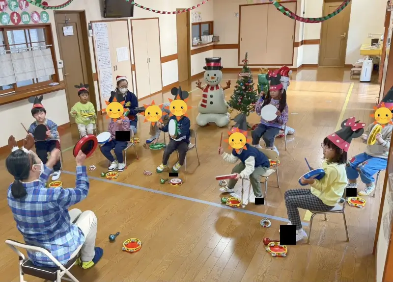 音楽の先生の音楽療法も良かったです。リズムに合わせて体を動かしたり歌ったり、珍しい楽器に触れて、みんな楽しそうでした。