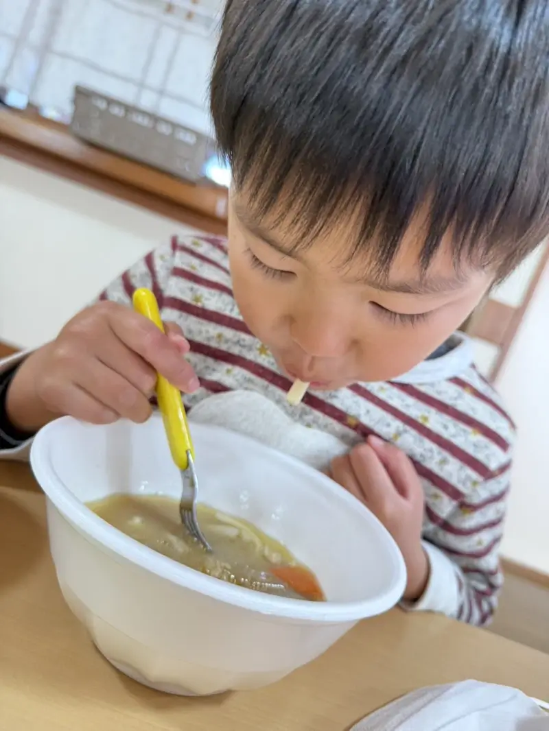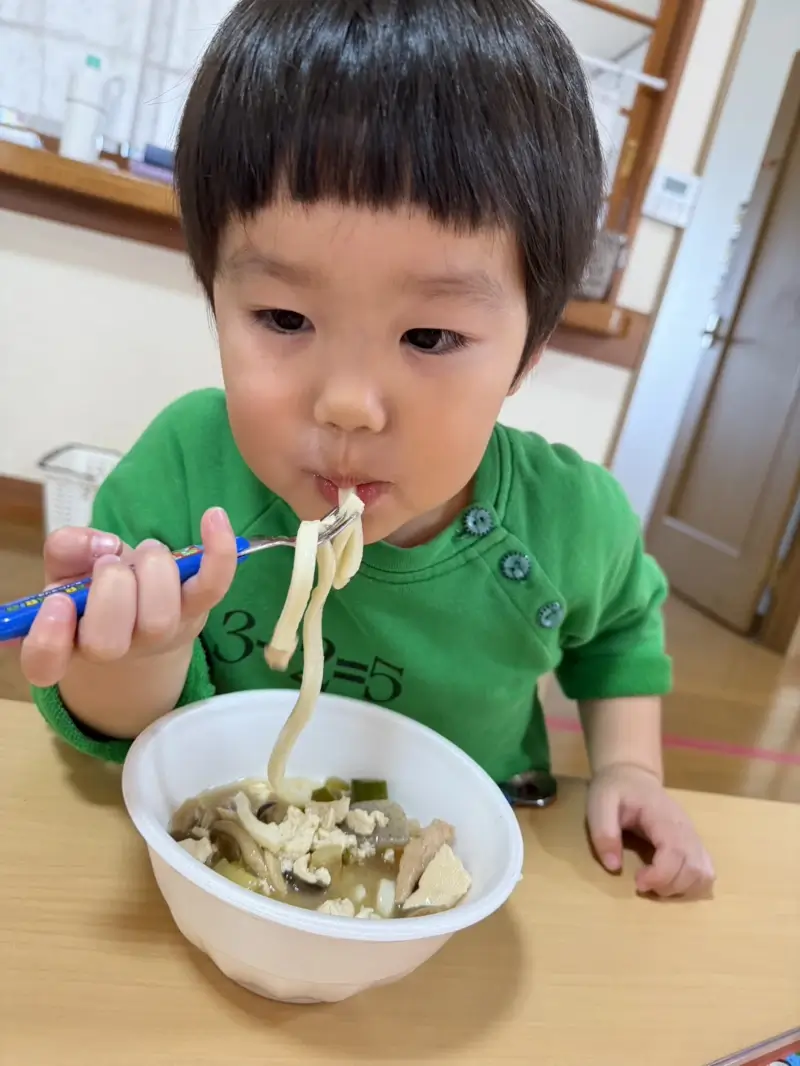 保護者の方から“具が混ざっているうどんは普段食べないんです”と聞いていた子が、なんと完食していて驚きました。みんなで食べる雰囲気や、行事の特別感が後押しになったのかもしれません。