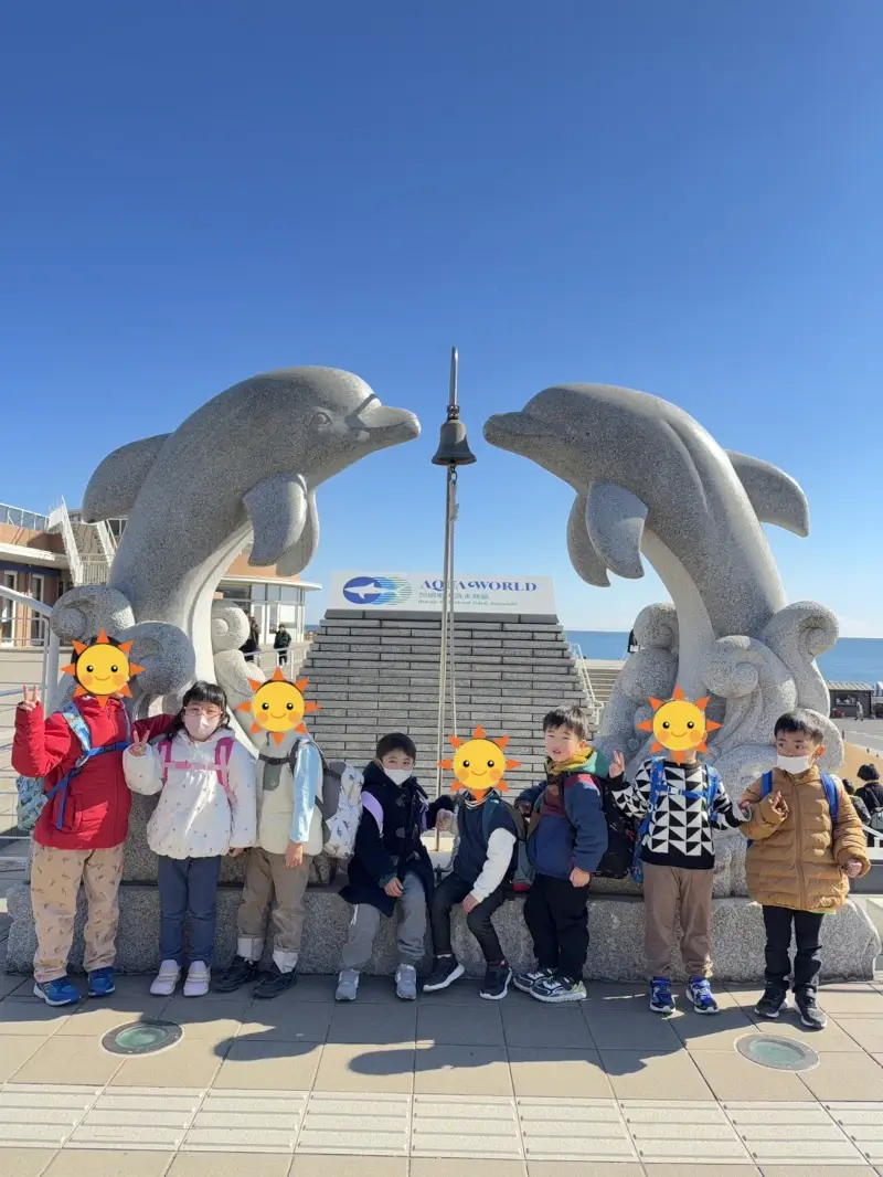 進級のお祝いとして、みんなで大洗水族館へ遠足に行ってきましたよ!朝からワクワクしている子が多くいました。でも、長い道のりにもかかわらず、送迎時と同じ“乗り方のルール”をしっかり守って座っていられたのが本当に立派でした。