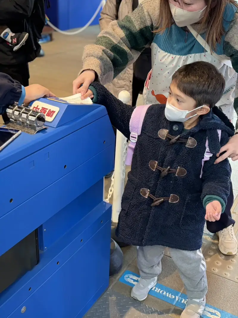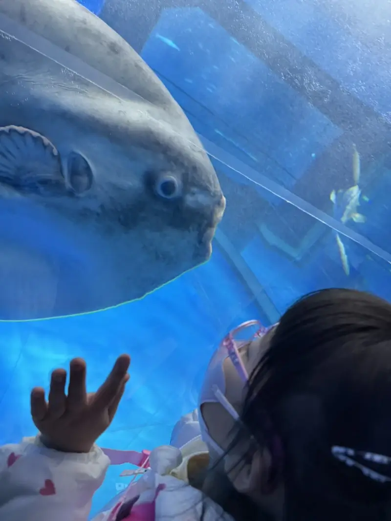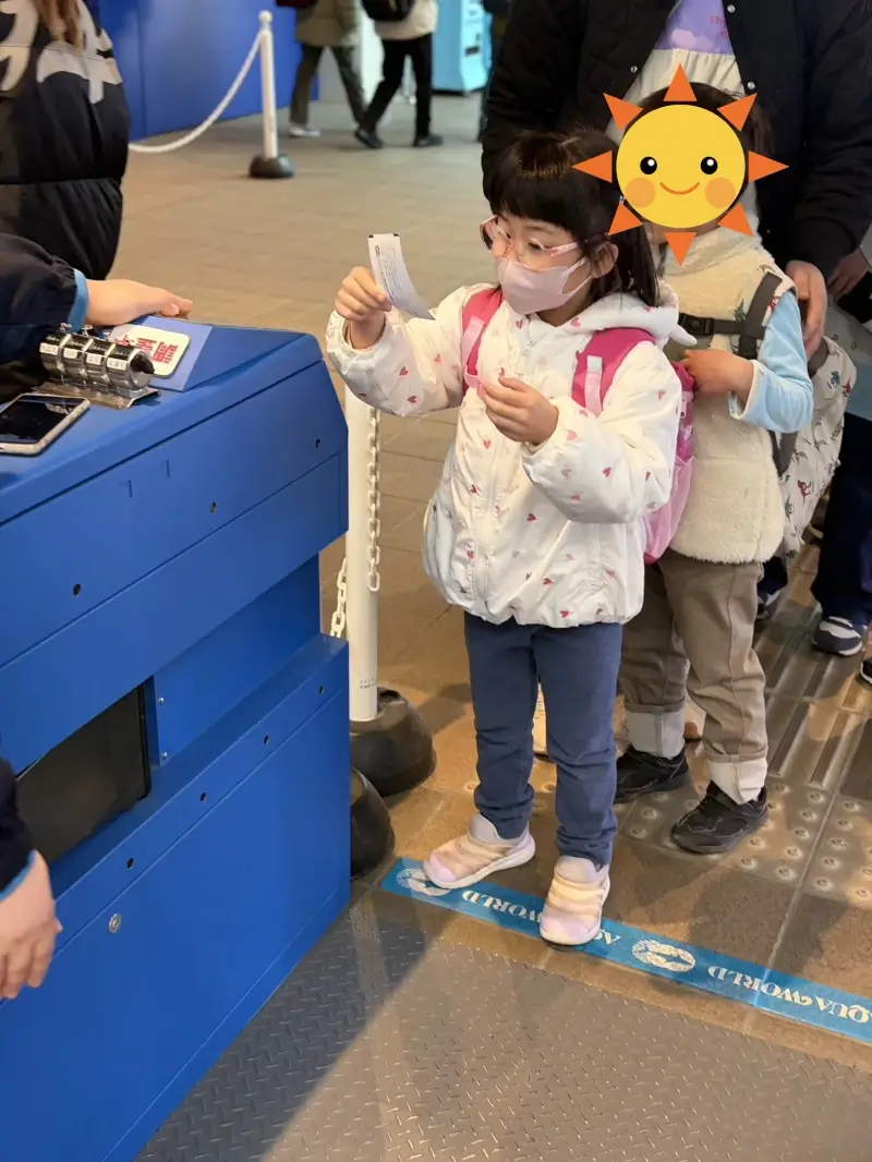 トイレ休憩をはさみつつ、片道2時間半以上のドライブでしたが、落ち着いて過ごせましたね。水族館に着いてからも、まずは“自分のことは自分で”という気持ちを大切にして、チケットを自分の手で入場ゲートに入れて入場する姿がとても印象的でした。まさに自立への第一歩だと感じました。