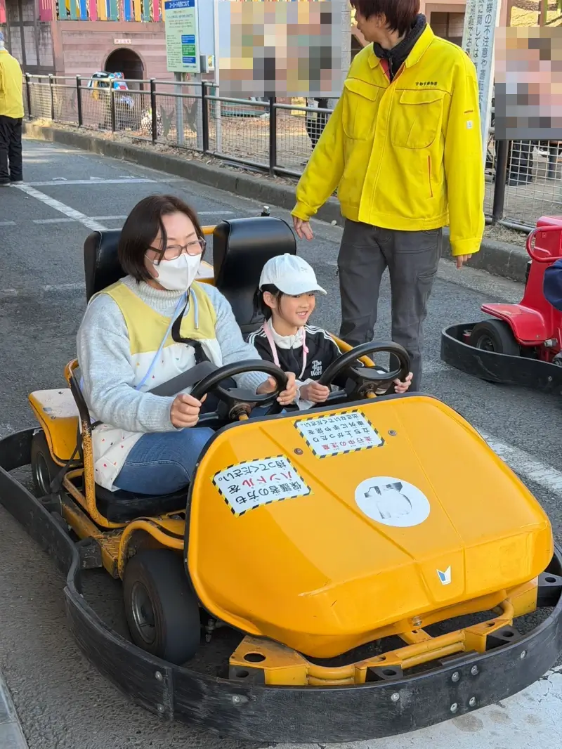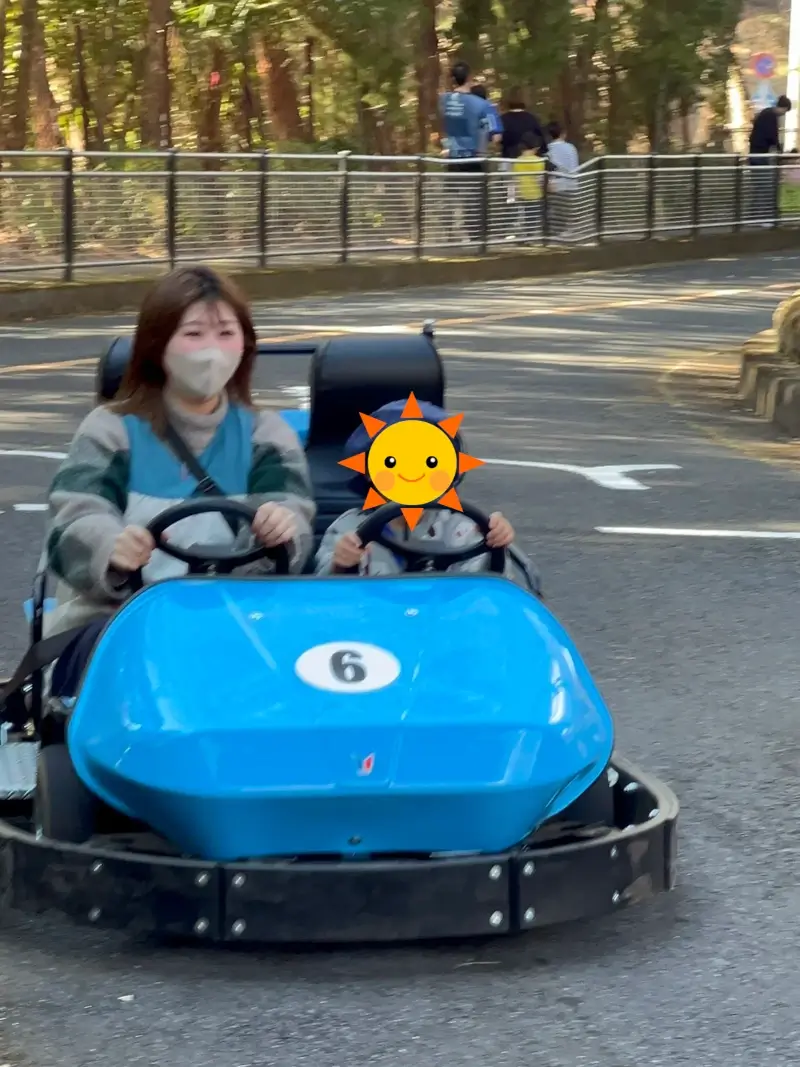ゴーカートも盛り上がりましたね!「ハンドルは離さないでね」という約束をしっかり守って、真剣な眼差しで運転する姿はまるで小さなドライバーでした。青空に笑顔が映えて、最高の瞬間を楽しみました。