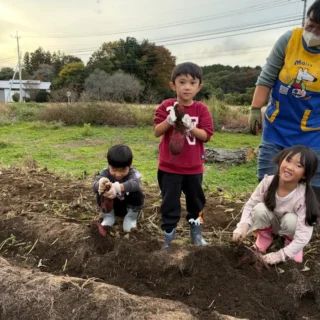リナ先生今日はおいもほりです。ゆきこ先生いつも子どもたちのために場所を貸してくださる農家さんに感謝で....